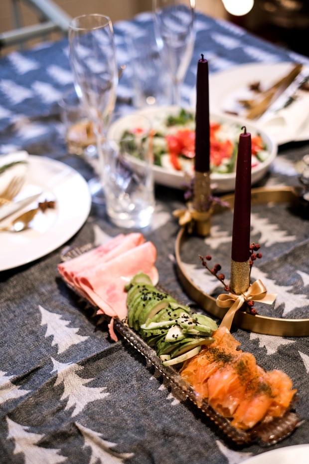 O víkendu jsme pořádali malý předvánoční brunch pro přátele, což je ze zásady ideální příležitost, proč se trochu rozšoupnout s prostíráním. Pokud se do středy ještě něco nesemele, nebudeme letos na Vánoce večeřet doma, slavnostní stolování jsem si tudíž užila už teď. A aspoň mám příležitost někoho trochu inspirovat párem tmavých fotek, heh